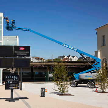 Voici la Genie S-60 FE, la nacelle télescopique hybride qui réinvente les règles du jeu. Elle offre une véritable performance tout-terrain avec son essieu oscillant actif, son aptitude en pente de 45 % et ses roues bénéficiant chacune d'un moteur de translation électrique asynchrone sans entretien étanche, capable de surpasser les performances des versions diesel sur terrains accidentés, boueux ou détrempés.